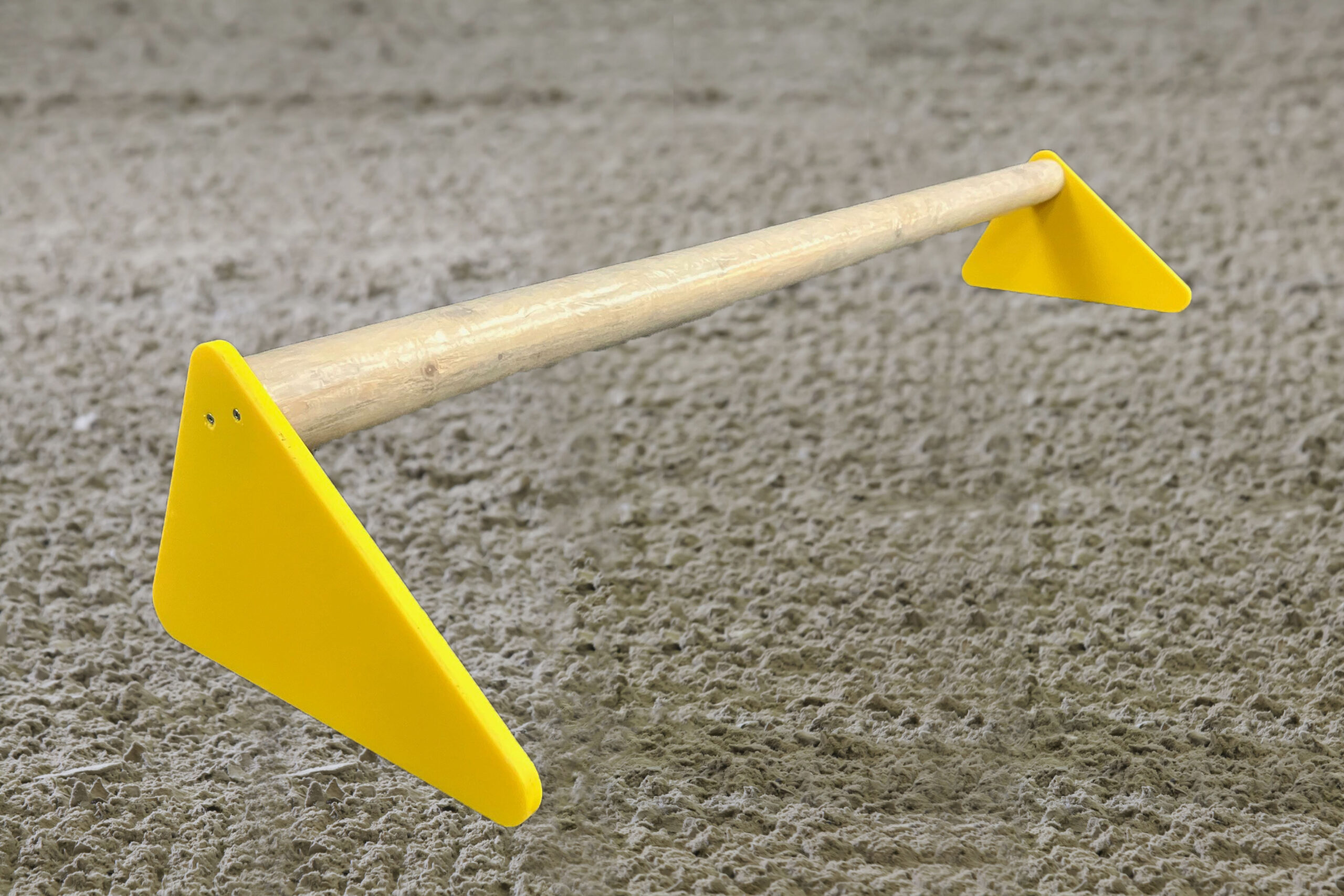 Cavaletti met een balk van 180cm en kleine driehoekige kunststof zijpanelen. Deze cavaletti kan op 2 hoogtes gesteld worden. De driehoeken zorgen ervoor dat bij longeren nergens uw koord achter blijft hangen. Houten balk voorzien van transparante beschermlaag